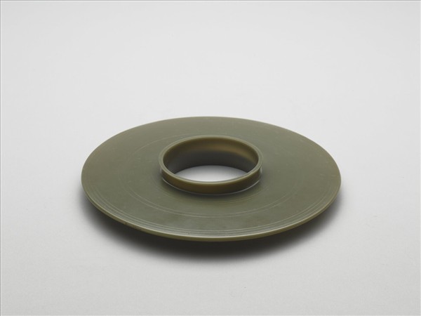 形制似璧,然孔緣處突起,璧面陰刻八圈同心圓的弦紋。