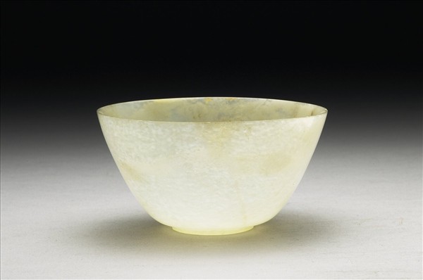 玉質。器甚小,侈口深腹,淺圈足,圈足內壁傾斜。