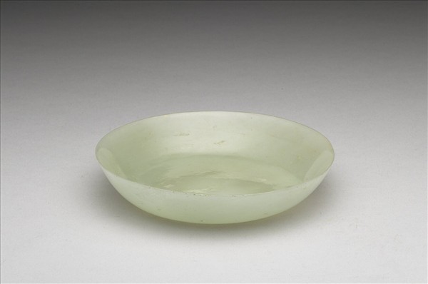 玉質。盤底為一片徑約7.2公分的圓形平面,器底部分仍保留粗糙面。