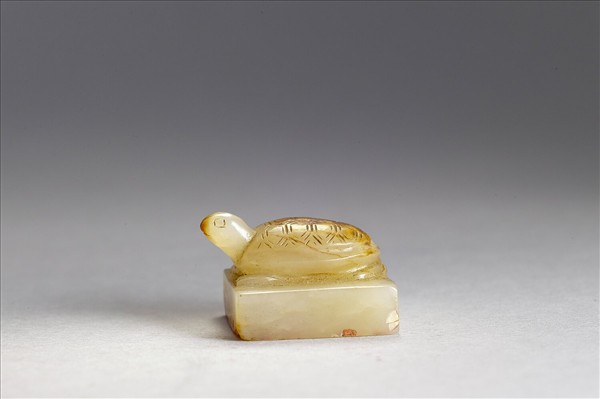 乾隆時收集成盒,共六方玉印(故玉3962-3967),盒內所附的小冊頁中提及,印文多和《印統》相吻合。《印統》,羅王常(1535-1607之後)編。羅氏,原名南斗,因避禍改名王常,安徽歙縣人,為製墨家、鑒賞家羅龍文之子,以篆刻聞名。曾受顧從德之請,將顧氏祖孫三代及其好友收集的古印輯成《印藪》,此書大量印行,對萬曆年間仿漢印的風潮有推波助瀾之效。此印文為「益壽」,印鈕及印式均為晚明仿漢風格。