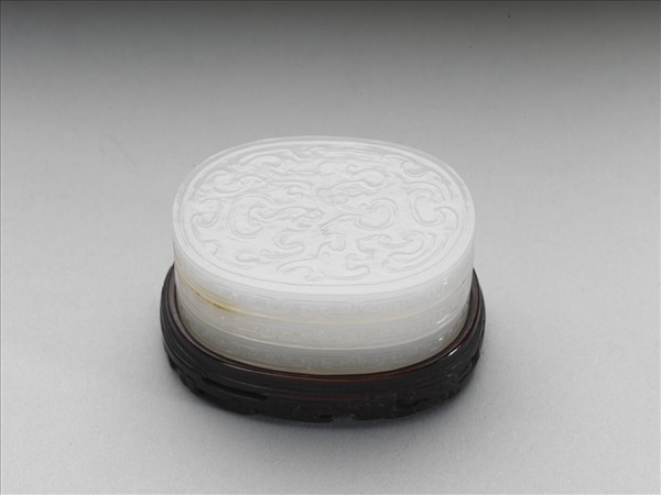 玉雕花雙層橢圓盒
