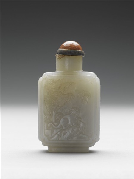 玉耄耋長春方壺鼻煙壺