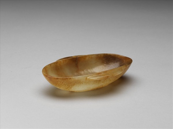 羽觴杯,玉質,光素無紋。但考古出土不乏裝飾華美的例子,例如江西南昌海昏侯劉賀墓、江蘇徐州獅子山楚王墓,以及江蘇盱眙江都王墓皆有出土。