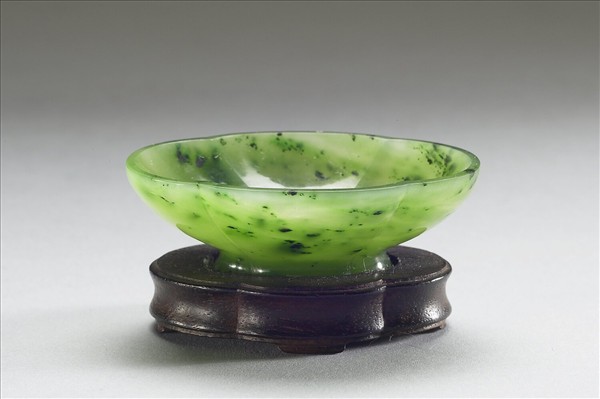 高1.9公分、口徑長5.1公分、寬3.6公分、底徑長2.7公分、寬1.8公分、木座長4.2公分、寬3.1公分、高1.0公分、連座高2.5公分