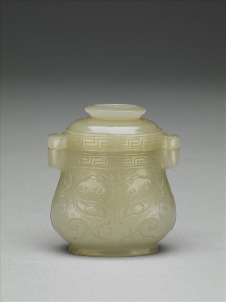 玉仿古獸面紋蓋壺