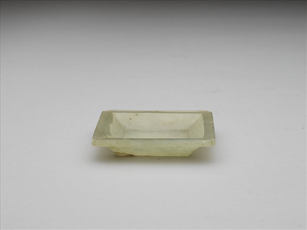 玉質。撇口,淺斜壁,平底。光素無紋。