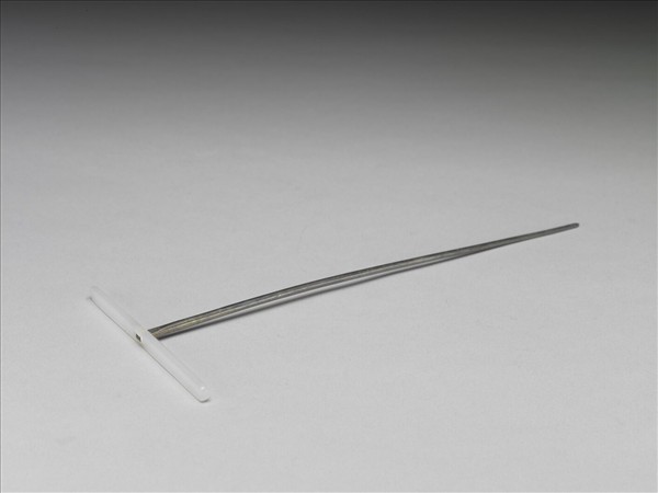 頭簪,主體銀製鍍金,簪首為一T字形白玉,光素無紋,質地晶潤。