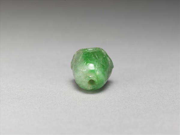 玉質,外型略如短圓錐狀體,一端挖空,可嵌入其他小飾件。