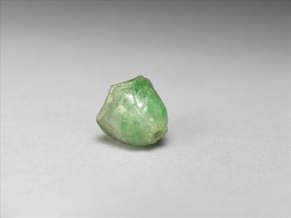 ⽟質,外型略如短圓錐狀體,⼀端挖空,可嵌入其他⼩飾件。