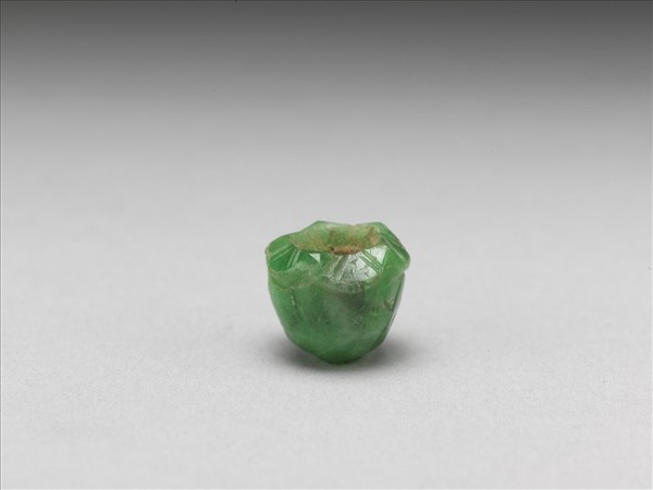 翡翠,外型雕如花萼般短圓錐狀體,一端挖空,可嵌飾其他小飾件。