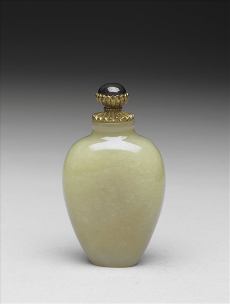 寬肩斂腹,帶銅鍍金嵌紅色寶石頂蓋及銅鍍金匙。與服飾飾品貯於皮箱中,存放於華滋堂燕喜堂。
