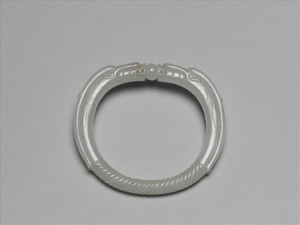 玉質,設計為兩龍啣一珠。本器一式兩件成對(故玉7901-7902)。