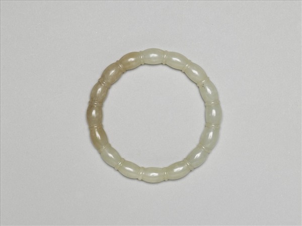 此玉鐲仿串飾形式,由相同組件串接而成。