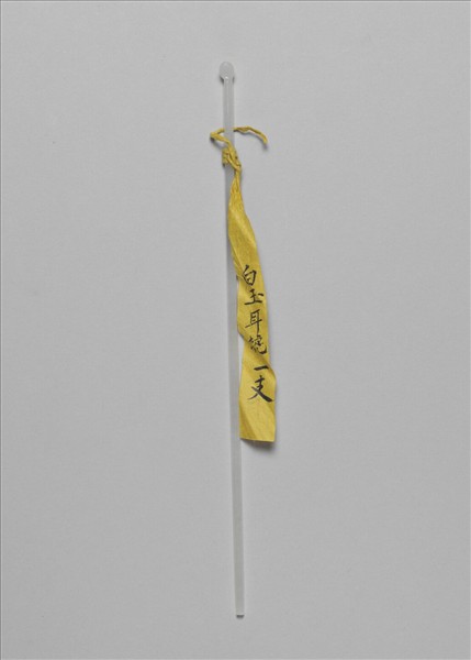 玉質,簪頂作耳挖,色灰白溫潤。