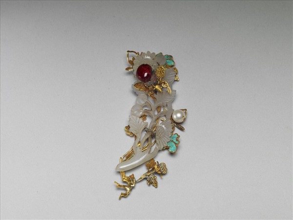 玉菊花紋簪花