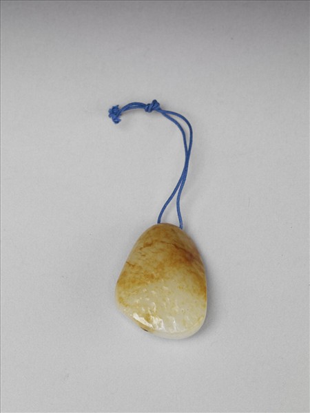 玉籽料,器上方鑽孔繫藍縧。