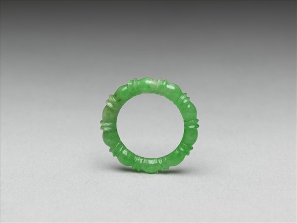 翠玉,兩股箍棱緊挨為一組,組組環接而成。