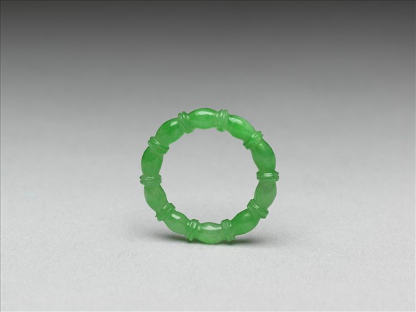翠玉,兩股箍棱緊挨為一組,組組環接而成。