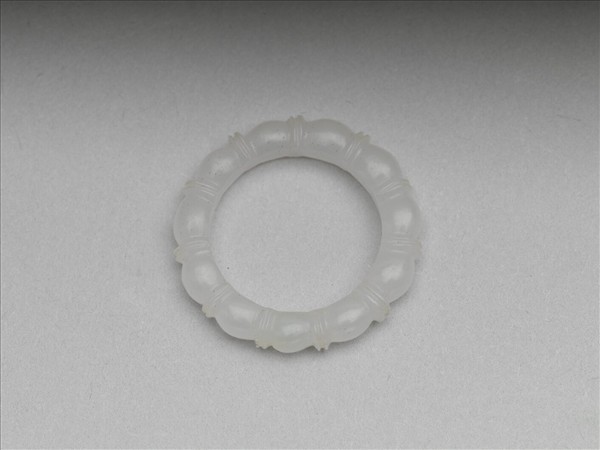 玉質。兩股箍棱緊挨為一組,組組環接而成。