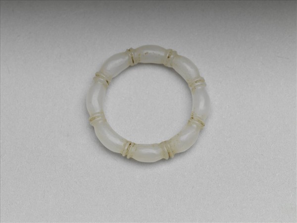 玉質。兩股箍棱緊挨為一組,組組環接而成。