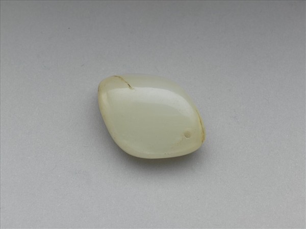 玉質,頂部穿孔可繫繩,泛青黃色。