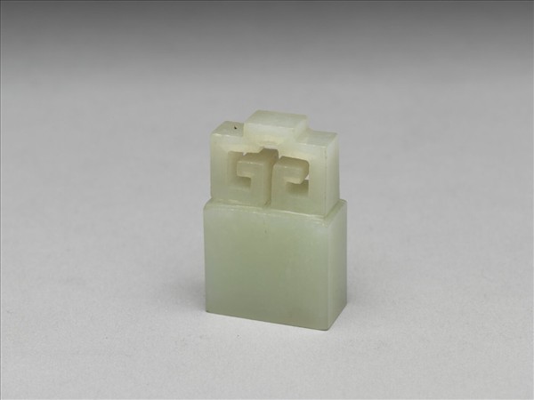 未刻印,青白玉,方形如意鈕,色澤清透,質地溫潤。