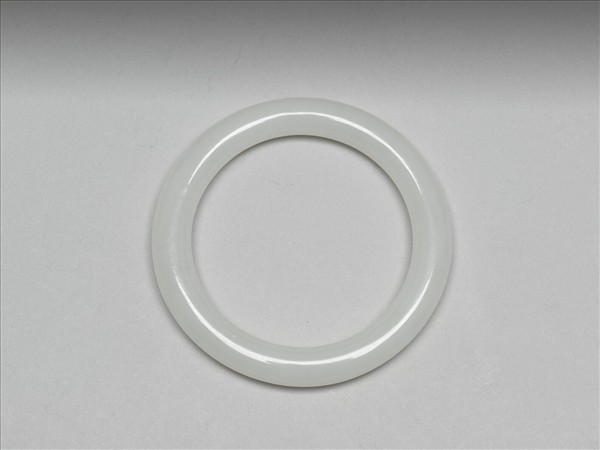整塊白玉雕刻而成之手鐲,玉質瑩潤純淨。全器呈環形,器壁打磨圓滑,光素無紋飾。