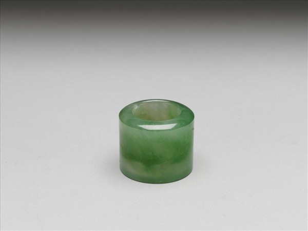 翠玉扳指,又稱為班指或挷指,是由古代射箭時,鉤弦的韘演變而成,為男子戴在右手拇指上的飾物,有時左右手拇指都戴飾。