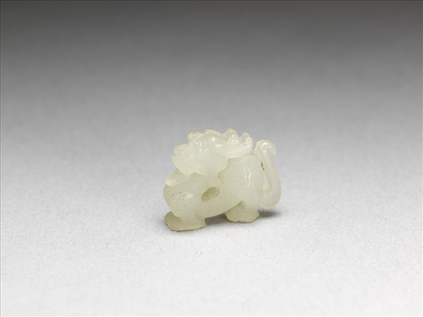 玉龍,四足具見,有如麒麟,尾部翹起有如猴尾。龍的表情略顯溫馴。龍身側有通心穿,可供穿繫或固定為其他物品的小配件。
