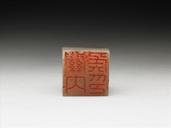 玉章,印面正方,色白有赭斑。印面陰刻四字篆文:「關內侯印」,其瓦鈕上赭斑滿布。乾隆皇帝嘗收聚八十方古印,命之為「虹文薈古」,並同儲於一盒四屜,此印即為其中一方。