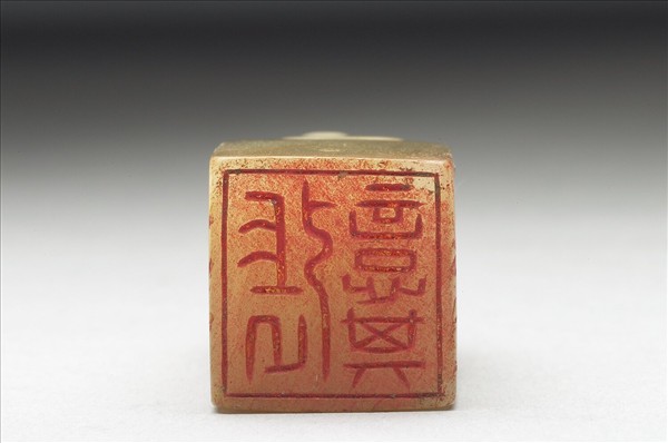 玉章,印面正方,色黃白。印面起邊欄並陰刻「張億其」篆文三字。印鈕則雕飾一站立回首異獸。乾隆皇帝嘗收聚八十方古印,命之為「虹文薈古」,並同儲於一盒四屜,此印即為其中一方。