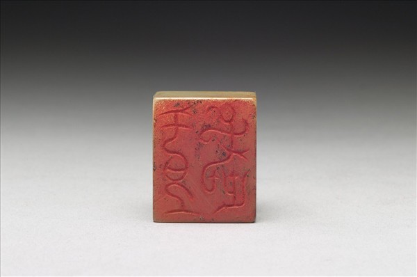 玉章,印面長方,色白有赭斑。印面陰刻二字篆文:「王武」。帶瓦鈕,全印光素無紋。乾隆皇帝嘗收聚八十方古印,命之為「虹文薈古」,並同儲於一盒四屜,此印即為其中一方。