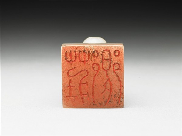 玉章,印面正方,色白有赭斑。印面陰刻二字篆文:「莊鄉」。印鈕則雕飾異獸踞立,其勢似正欲向前躍出。乾隆皇帝嘗收聚八十方古印,命之為「虹文薈古」,並同儲於一盒四屜,此印即為其中一方。