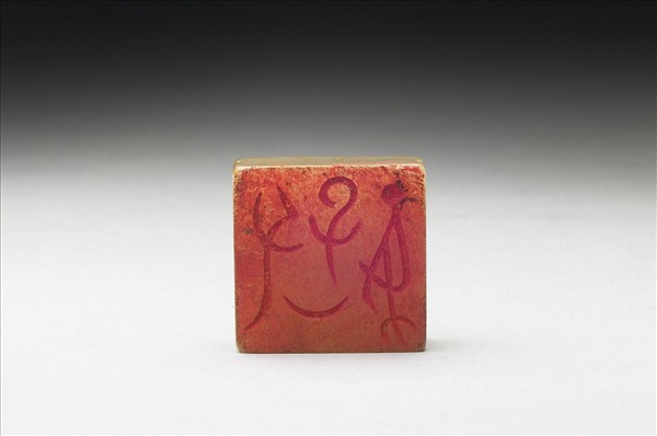 玉章,印面正方,色白微有赭斑。印面陰刻四字篆文:「父乙子孫」。印身穿有一孔。乾隆皇帝嘗收聚八十方古印,命之為「虹文薈古」,並同儲於一盒四屜,此印即為其中一方。