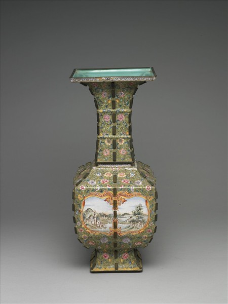 銅胎畫琺瑯帶戟方形瓶