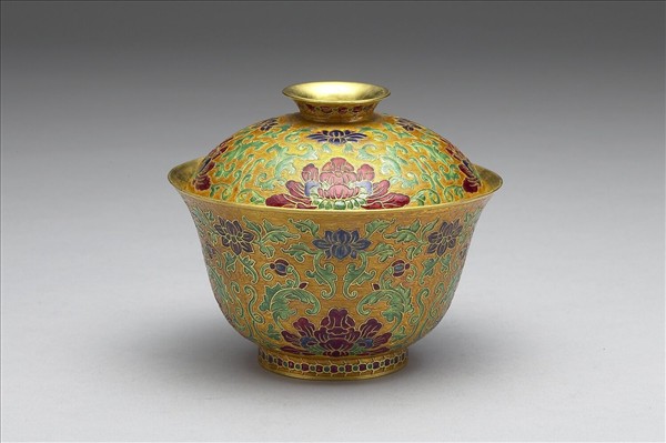 金胎內填琺瑯番蓮紋蓋盞