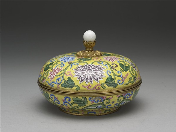銅胎畫琺瑯番蓮紋蓋盒
