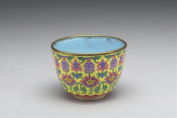 銅胎畫琺瑯黃地花卉紋套杯