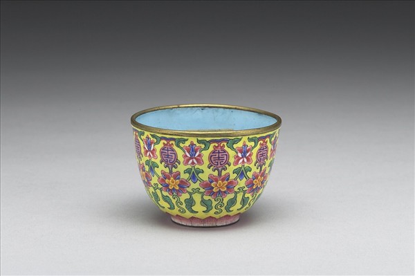 銅胎畫琺瑯黃地花卉紋套杯
