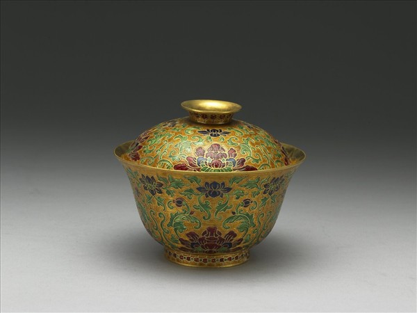 金胎內填琺瑯番蓮紋蓋盞
