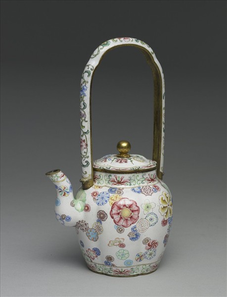 銅胎畫琺瑯皮球花紋提梁壺