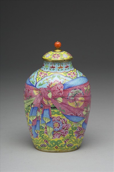 銅胎畫琺瑯包袱紋蓋罐