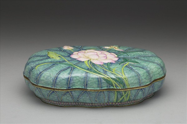 銅胎畫琺瑯荷葉式盒