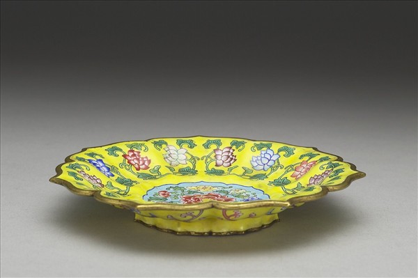 銅胎畫琺瑯蓮花式碟
