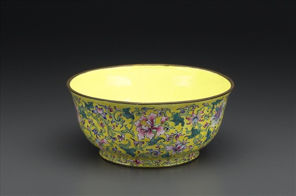 銅胎畫琺瑯黃地花卉紋碗