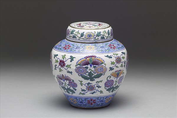 銅胎畫琺瑯白地花蝶紋蓋罐