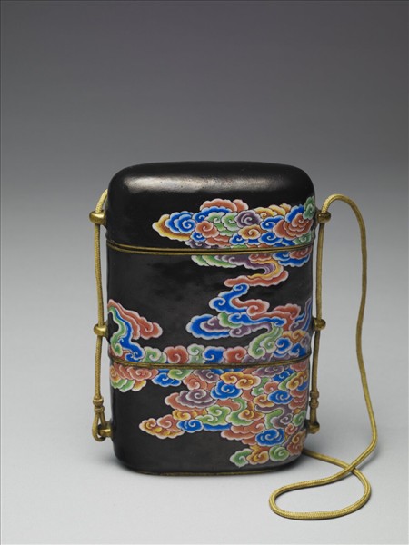 銅胎畫琺瑯黑地彩雲紋穿帶盒