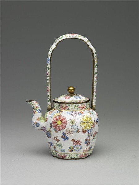 銅胎畫琺瑯皮球花紋提梁壺