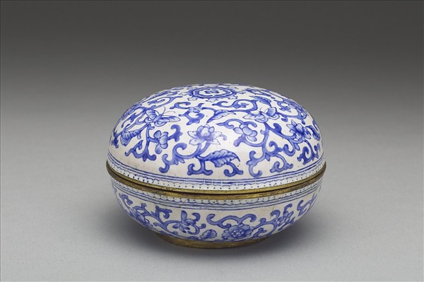 銅胎畫琺瑯白地藍花圓盒