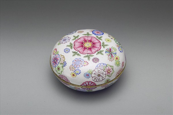 銅胎畫琺瑯白地彩花圓盒